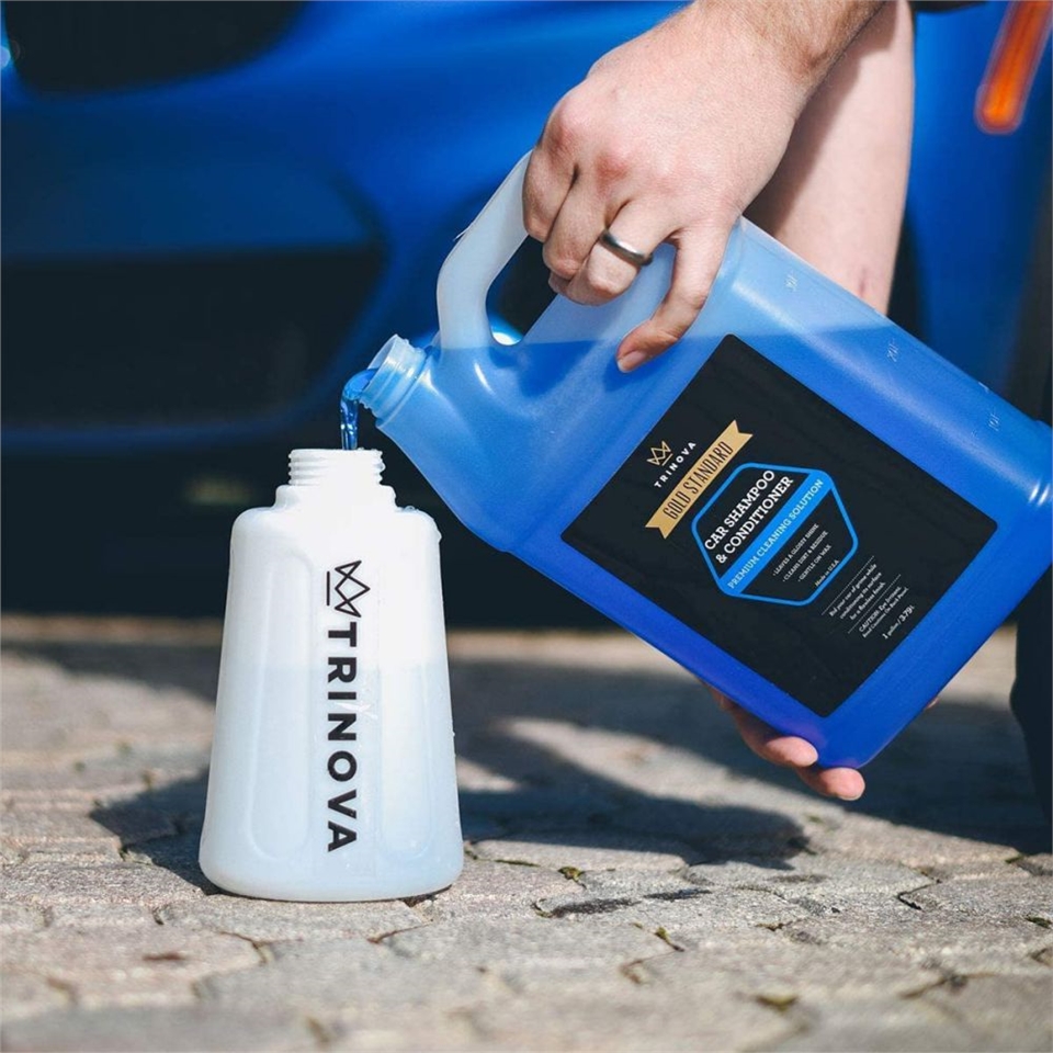 將適量的 TRINOVA® CAR WASH SOAP 加入洗車海綿或洗車手套中。