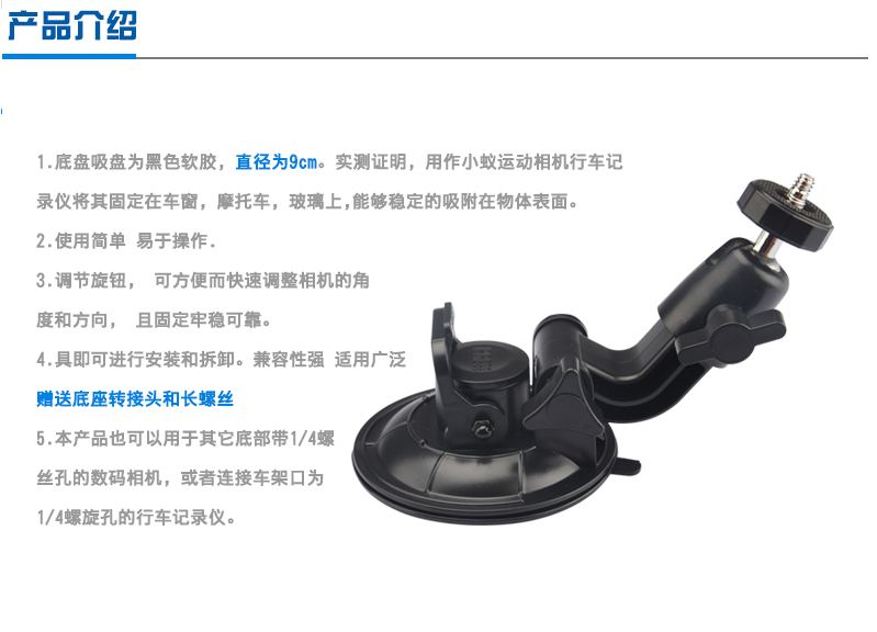 如何選擇吸盤1.車內使用:靜態場景:可用小吸盤,汽車不行駛的情況下或者低速行駛的情況下可以使用小號吸盤。行駛場景:用大號吸盤,吸力更強,快速行駛才穩定。可以掛GOPRO,INSTA360的相機如果需要多角度調整的,可選擇紅色款的球頭吸盤,紅色球頭款安裝要注意的是先旋轉到鎖定狀態再放到平面上,再旋轉解鎖再鎖定,這樣才好吸住,不然的話直接放平面旋轉鎖定基本上轉不動,很吃力,這是要注意的。可以掛GOPRO,INSTA360的相機2.車外使用靜態場景:如果吸玻璃的話可以選擇三腳吸盤比較穩定,三腳吸盤吸鐵的話會受溫度,環境影響比較大。車不動的話還可以用磁吸單吸盤。可以掛GOPRO,INSTA360的相機行駛場景:低速行駛可以用中號雙吸盤。高速行駛或者接自拍桿,掛手持云臺的情況下要用大號雙磁吸吸盤,掛自拍桿跟手持云臺這些比較長的配件都需要垂直安裝吸盤,不能裝在車的側面,重量會不平衡。可以掛GOPRO,INSTA360的相機,只掛相機行駛120時速都是穩固的。