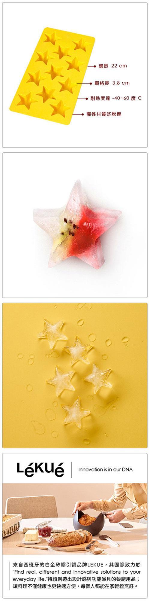 本商品一件入 (一次可製冰塊 x 11);耐熱度 -40~60 度C,適用冷凍冷藏、手洗清潔。享用沁涼可樂、冰醇咖啡時,試試此款星星造型的製冰器,增添飲品風味。彈性材質方便您彎扭盒體取出冰塊,製冰盒也不會損傷;搭配底部加固設計,端拿不易因變形而溢出液體,且橡膠製具止滑效果,可穩放冰箱內防止滑動。製冰時可隨意加入香草葉、藍莓等香料果粒,讓透亮的冰塊變得繽紛且口感豐富。輕鬆製出造型可愛的冰塊,漂浮於飲品中也是注目的焦點。