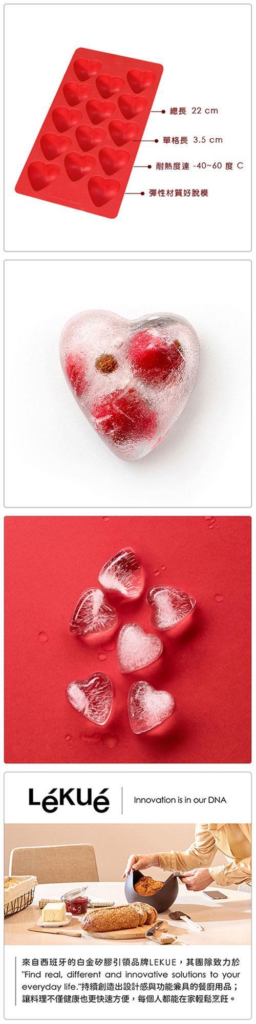 本商品一件入 (一次可製冰塊 x 14);耐熱度 -40~60 度C,適用冷凍冷藏、手洗清潔。享用沁涼可樂、冰醇咖啡時,試試此款愛心造型的製冰器,增添飲品風味。彈性材質方便您彎扭盒體取出冰塊,製冰盒也不會損傷;搭配底部加固設計,端拿不易因變形而溢出液體,且橡膠製具止滑效果,可穩放冰箱內防止滑動。製冰時可隨意加入香草葉、藍莓等香料果粒,讓透亮的冰塊變得繽紛且口感豐富。輕鬆製出造型可愛的冰塊,漂浮於飲品中也是注目的焦點。