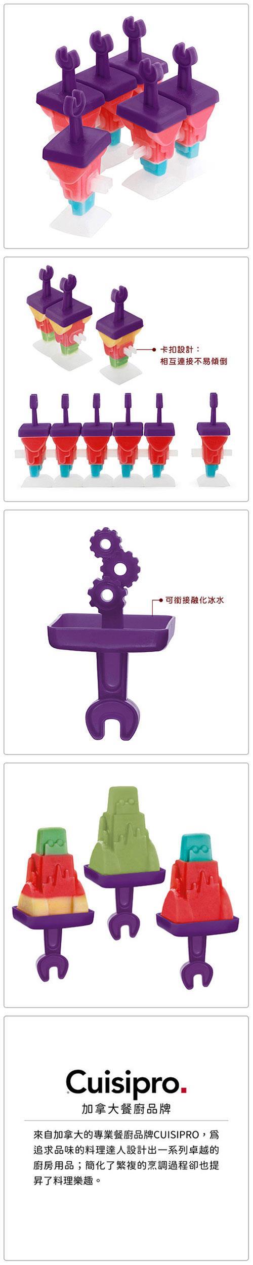 本商品一組 6 入,適用冷藏冷凍與手洗清潔。喜歡自製安全衛生的冰品,給家中大人小孩一起消暑享用的您,此款單品不容錯過。外型仿若機器人般,使用時,將果汁、優格等倒入半透明模具後,再將棒型蓋蓋上,立放冰箱冷凍,等待冰品結凍即可享用 (為確保完整取出冰棒,從冰箱拿出後,可先浸泡半透明模具於常溫清水約 5 秒,會更容易透過棒型蓋順利拿起冰棒);側邊具卡榫可串起 6 個模具,不僅立放穩固,於冰箱中還不佔空間。享用冰棒時,冰棒棍身外緣加高設計可防止冰品融化而滴漏滿地的窘境,是兼具創意和實用的好設計。