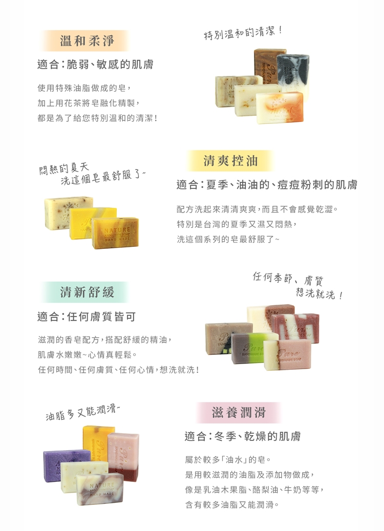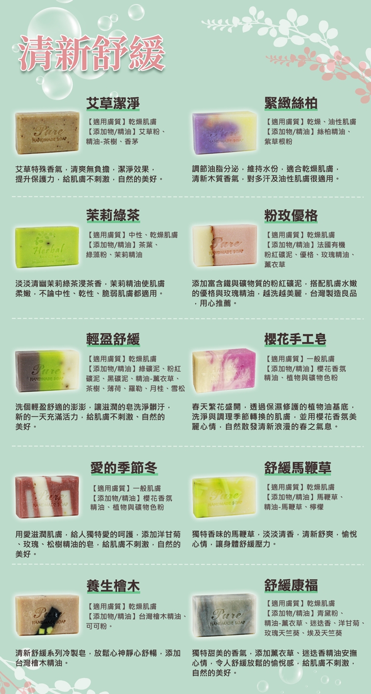 1. 每一顆手工皂會因花草植物生長因素,自然成色會有差異,不影響使用及品質,請以收到的實際商品為主。