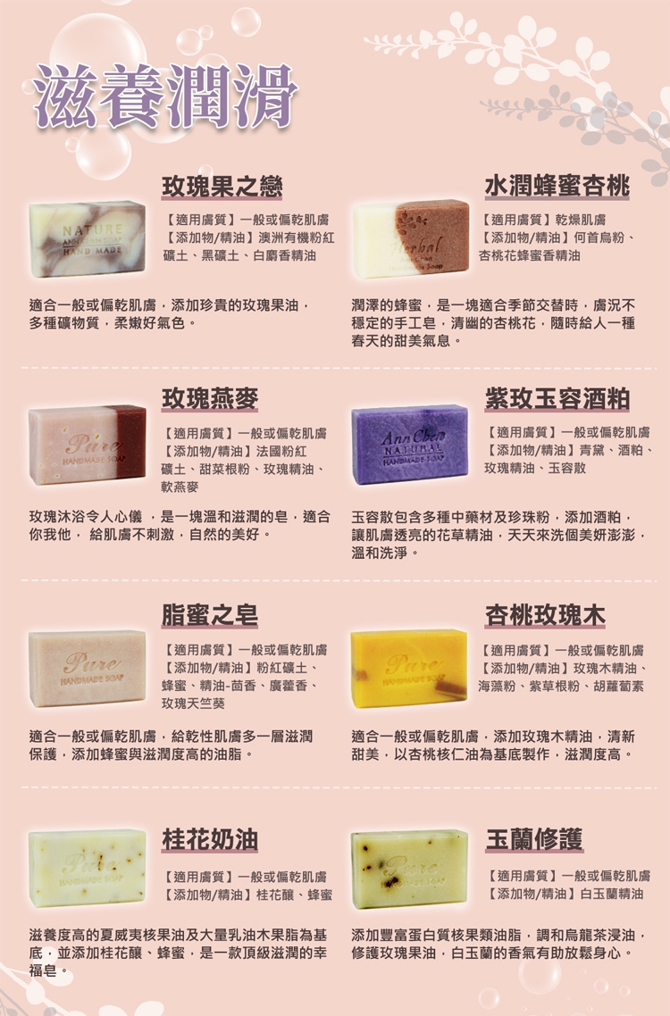 陳怡安手工皂-玫瑰潤澤手工皂x4入特惠組(玫瑰燕麥/杏桃玫瑰/玫瑰果之戀/粉玫優格)