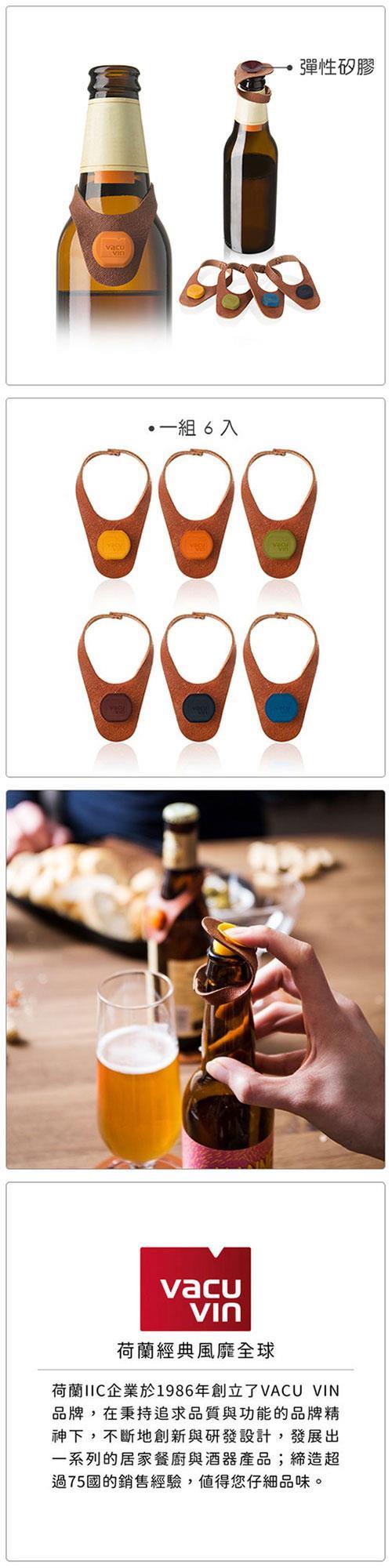 熱鬧的派對上,人手一瓶沁涼啤酒,那是解放自己、縮短彼此之間距離的鑰匙。此款瓶塞以彈性佳的矽膠製成,可適合多數啤酒、紅白酒瓶;可掛於瓶頸,避免丟失;鮮豔色彩,方便辨識。矽膠瓶塞類似吸盤設計可固定於瓶身。使用時直接將皮革套入酒瓶頸,並將酒塞調整下壓於瓶口,可密合多數玻璃瓶口。