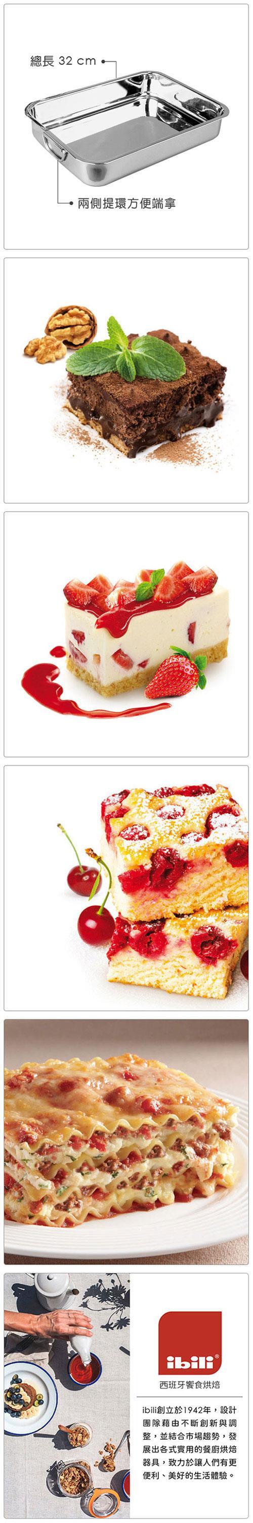 ※ 長方型深烤盤適合焗烤蔬菜、麵條、全雞、肋排;亦可製作布朗尼、千層派等點心。