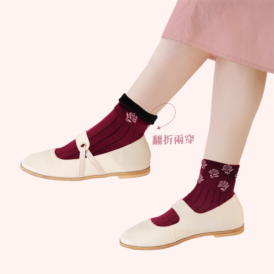 【DR.WOW】萊卡抑菌消臭寬口襪-玫瑰-DR746