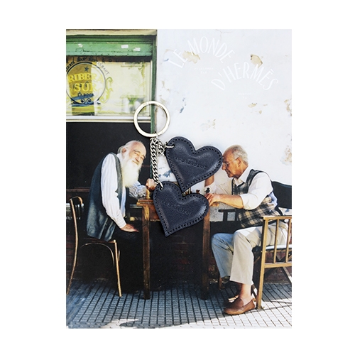 LA BAGAGERIE 牛皮雙心鑰匙圈(深灰)