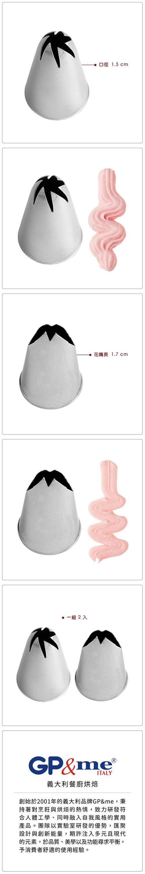 本商品一組含花型花嘴 x 1、葉齒花嘴 x 1,適用洗碗機。La Dolcetteria 系列,從烘烤模具到花邊裝飾,品項齊全提供您更多選擇。法式料理中精緻的盤飾以及西點上面的裝飾,往往會有畫龍點睛的效果,運用不同造型的擠花嘴,輕鬆化身裝飾達人。花型花嘴可做糖花裝飾、蛋糕邊飾等,大口徑可做擠花餅乾;葉齒花嘴可做出平寬線條、褶皺邊緣、扇貝紋路等裝飾,最常用在葉片造型的描繪。可搭配花嘴轉接頭使用。