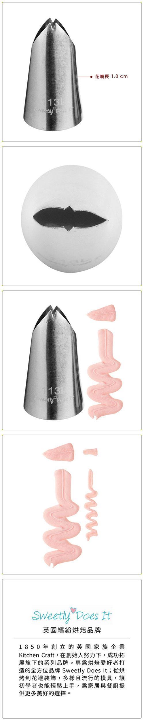 本商品一件入(編號113L)、適用洗碗機。法式料理中精緻的盤飾以及西點上面的裝飾,往往會有畫龍點睛的效果,運用不同造型的擠花嘴,輕鬆化身裝飾達人。葉齒花嘴可做出平寬線條、褶皺邊緣、扇貝紋路等裝飾,最常用在葉片造型的描繪。可搭配花嘴轉接頭使用。