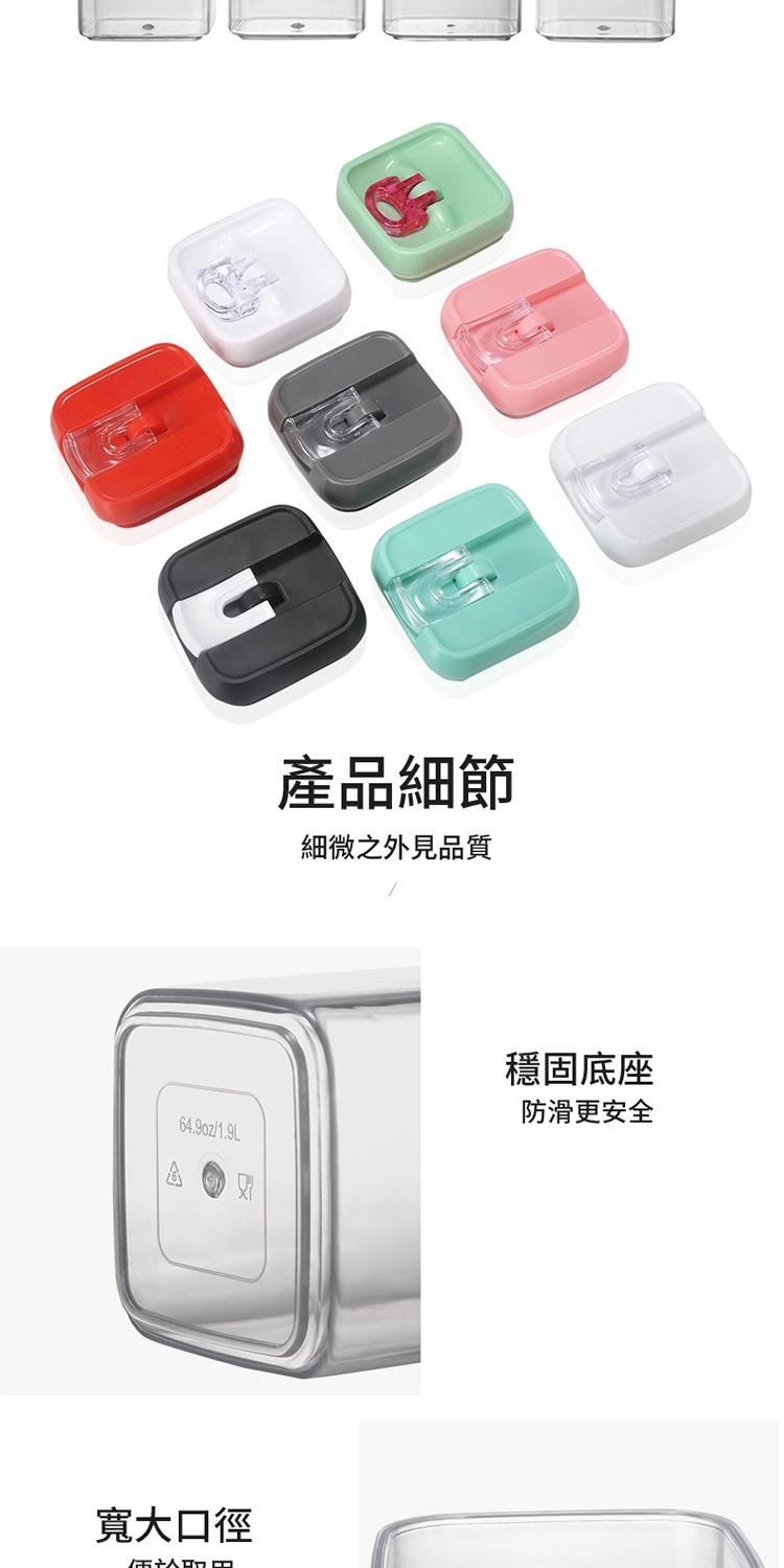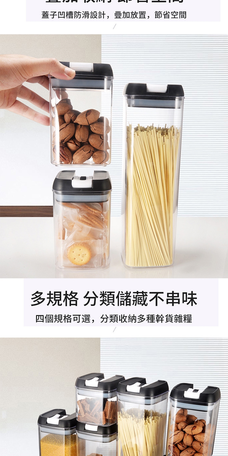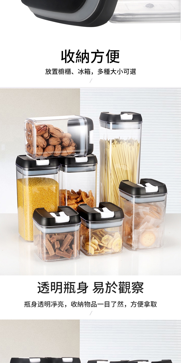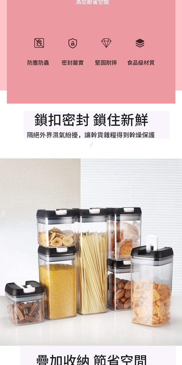 產品賣點:易扣罐適合存放各種乾貨以及各類糖果點心。易扣設計,上掀即可打開,下按即可扣緊。可隨意組合、堆疊,讓您有效的保持廚房條理性。也可放冰箱冷藏,耐熱溫度:0℃-80℃。