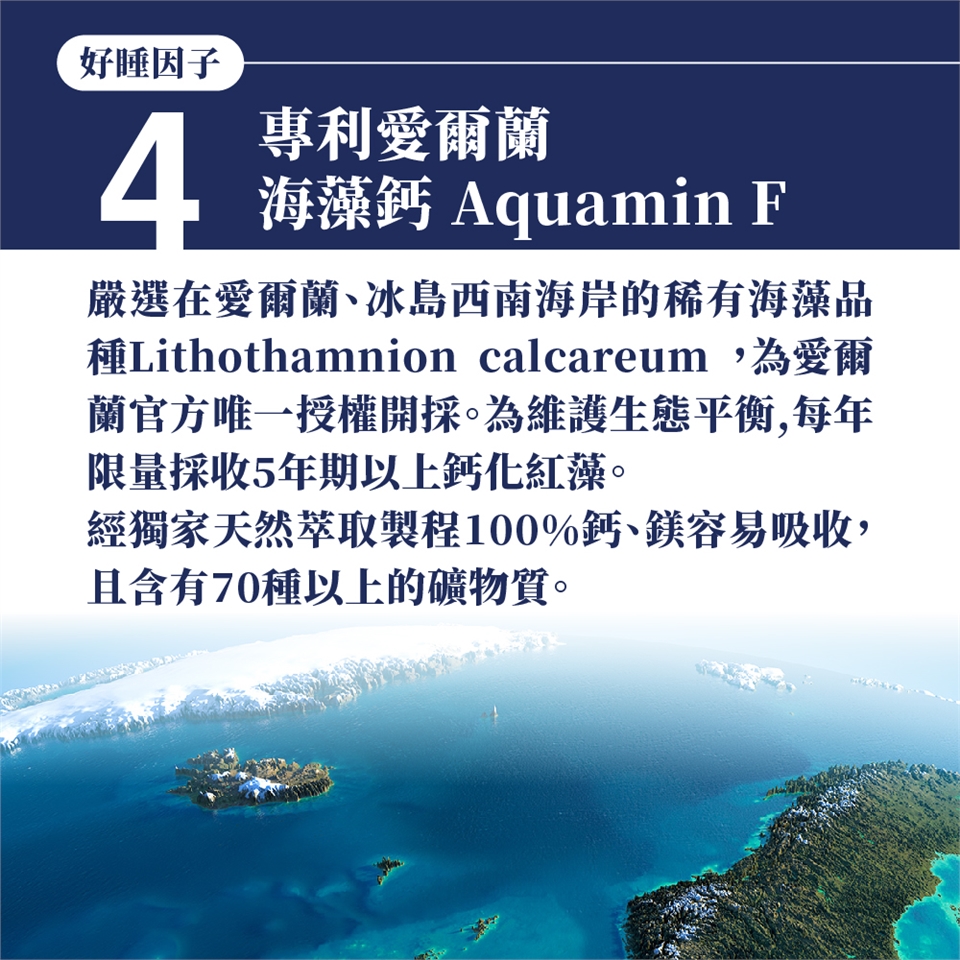 🌹:源自愛爾蘭與冰島海域的稀有海藻品種,獨家天然萃取製程10%鈣和鎂容易吸收,幫助入睡的關鍵。