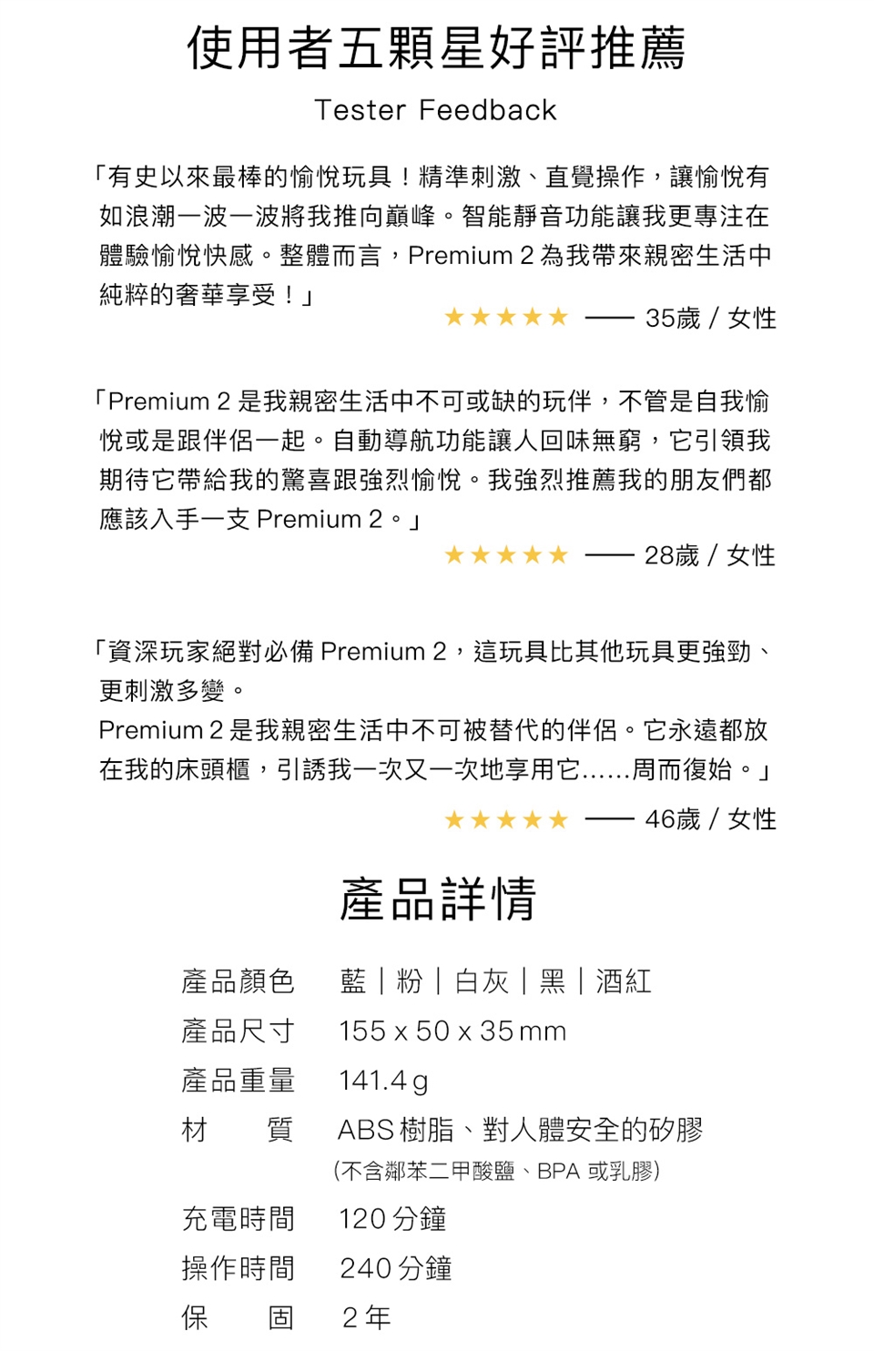 6. 保固期內商品本身有瑕疵或故障 (非人為因素和外力損壞),因產品屬個人私密用品,有衛生疑慮,保固只更換新品,不維修。