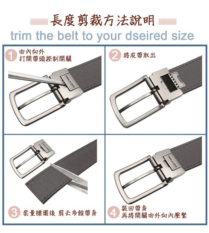 可依個人腰圍裁減皮帶長度