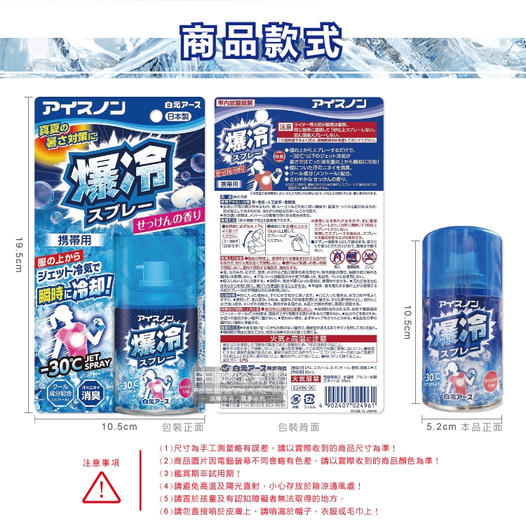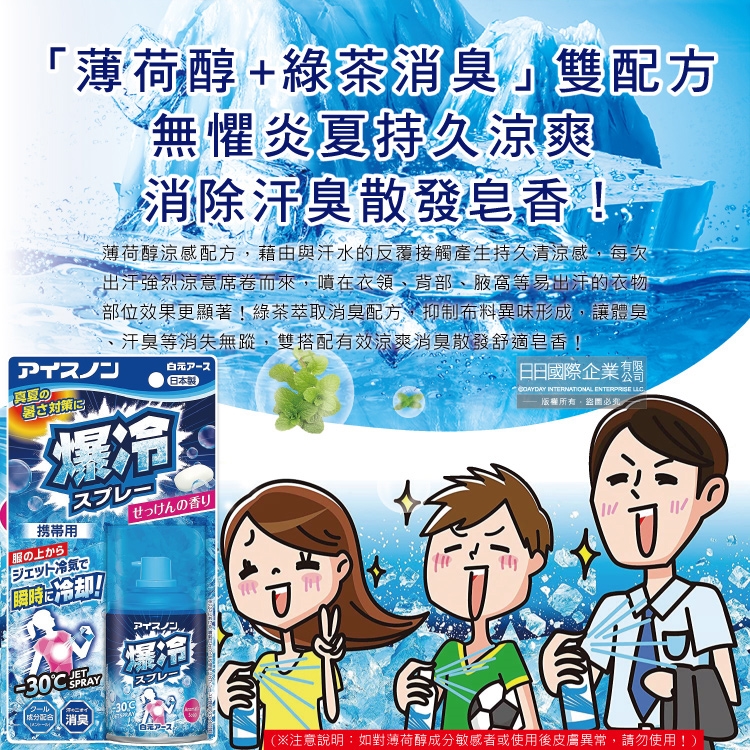 ●品名:夏日消暑汗味消臭瞬冷約-30℃衣物涼感噴霧-爆冷皂香