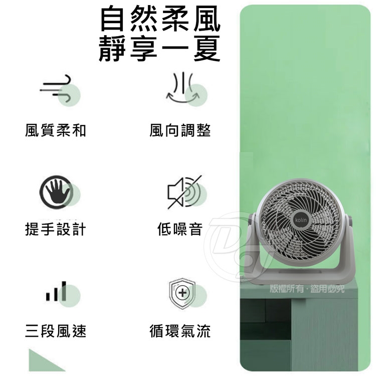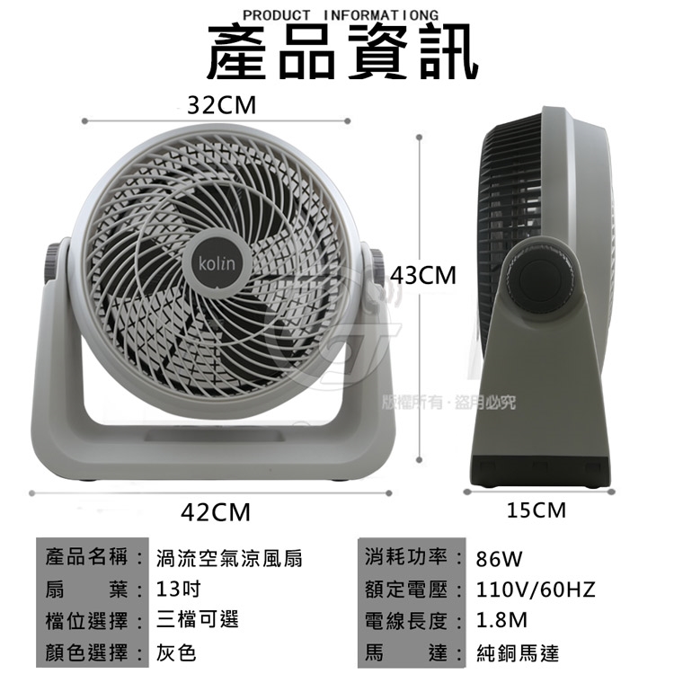 ◎品名:KOLIN 歌林13吋勁涼渦流循環扇風扇 (KFC-MN1323)