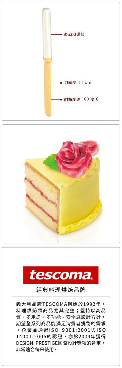 本商品一件入(刀面長 11 cm)、耐熱度 100 度C、適用洗碗機;適用塗抹奶油巧克力醬料、並抹平於蛋糕體上。蛋糕要做得精緻美麗,均勻豐厚的奶油是蛋糕的靈魂。舒適握柄,好握也可輕鬆施力;長柄可伸入窄罐並順手刮出巧克力、花生醬、起司奶油等,彈性刀面方便您依蛋糕型體隨心抹勻,亦可作蛋糕刀簡易切割使用,是烘焙裝飾不可或缺的好幫手。