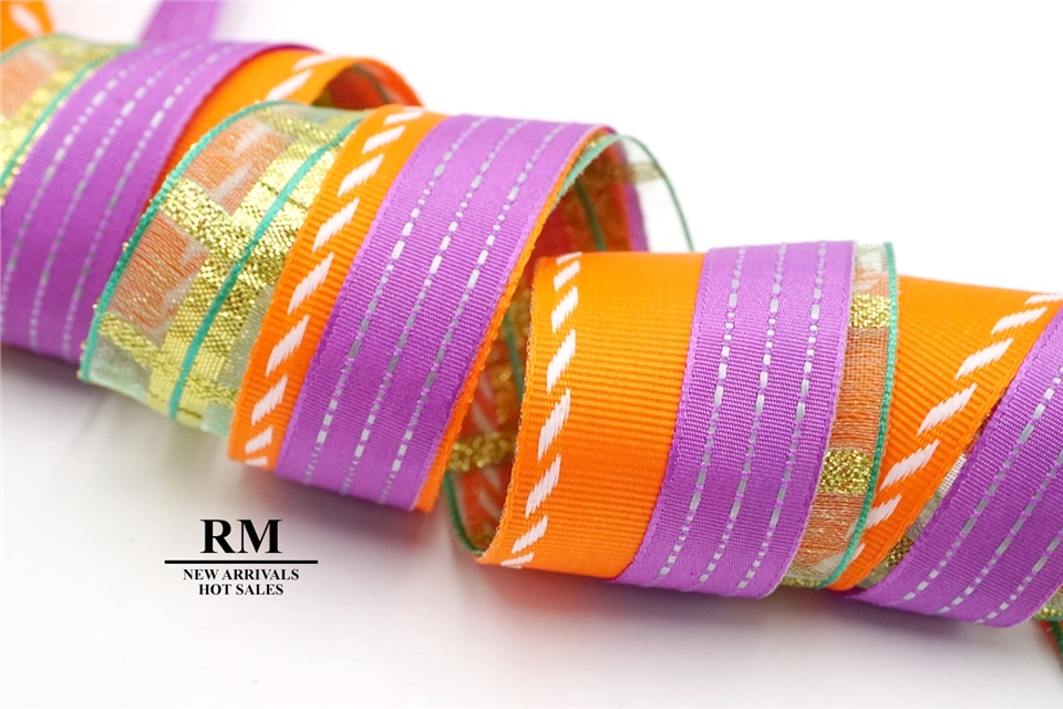 K1353-3 7/8inch X 20yard(橘+白色)