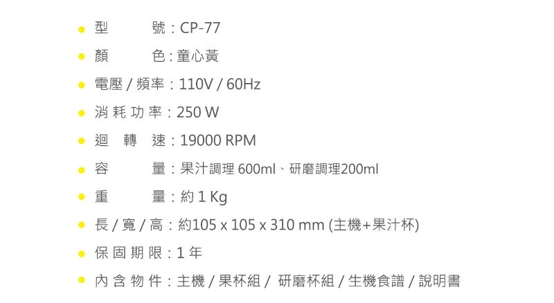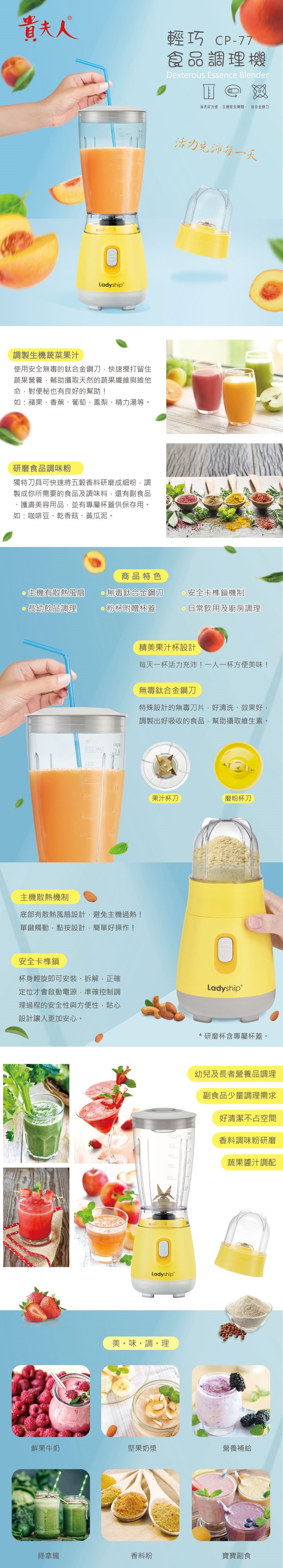 1.無毒鈦合金鋼刀與特殊設計,能快速粉碎並鎖住蔬果營養。