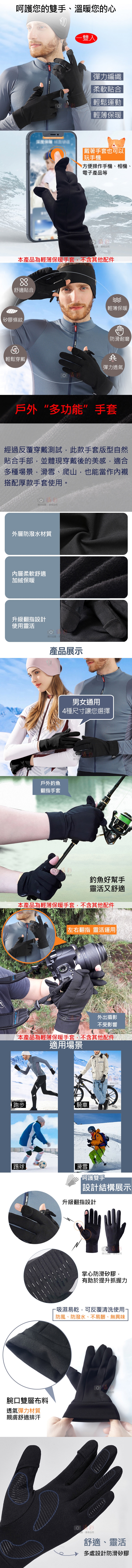 特色:掌面矽膠防滑,左右手指尖翻指設計,保暖同時可使用手機
