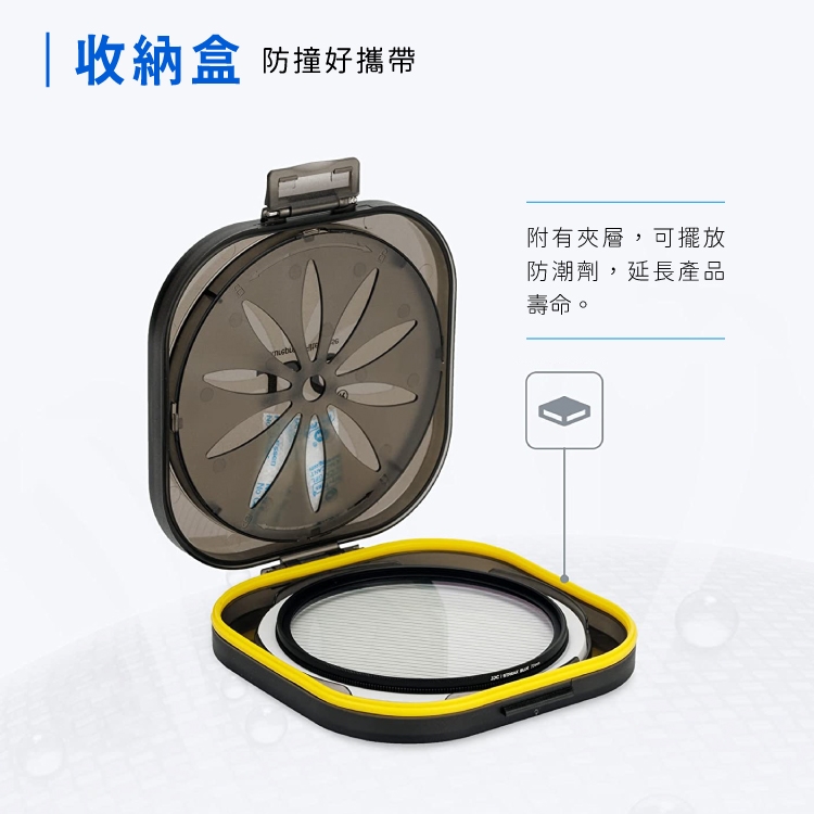 ●附收納盒,可防撞好攜帶,內有夾層能夠擺放防潮劑。