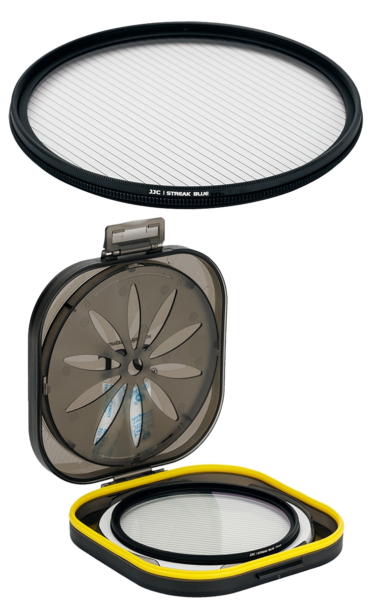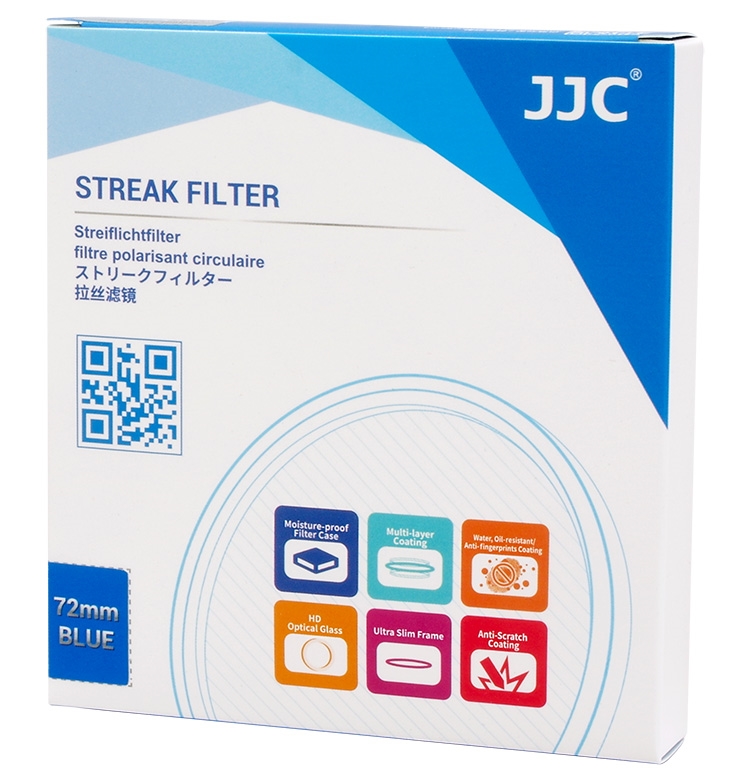 ●【品名】JJC藍拉絲1線星芒電影特效濾鏡72mm濾鏡F-BS72冷光暈(附防潮收納盒;14層多層膜/防刮抗汙)藍色拉絲耀斑電影濾鏡