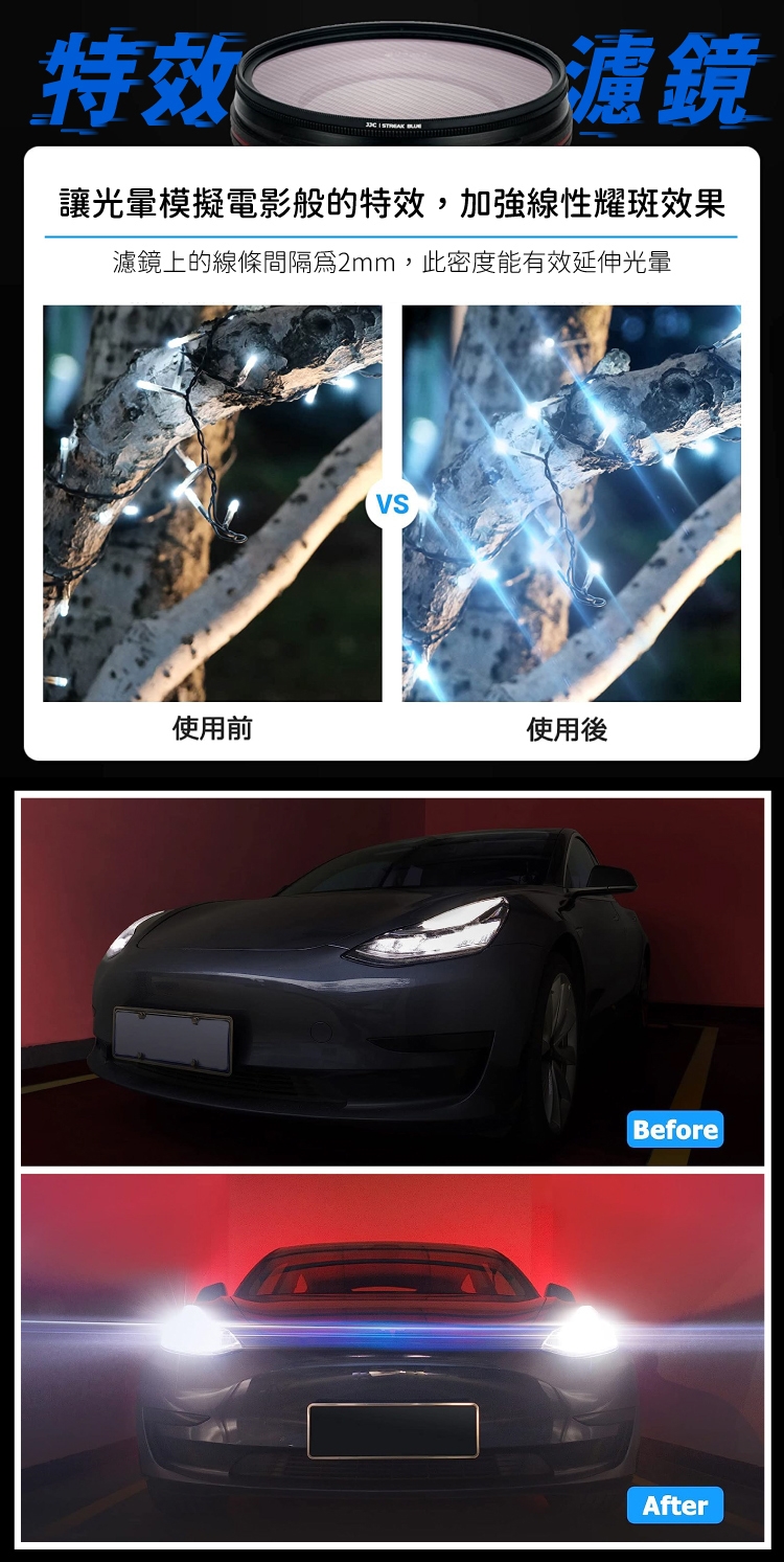 ●模擬電影特效的線條濾鏡,無須後製便能打造出線性耀斑,加強線條光暈感。
