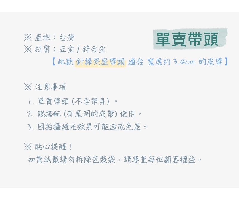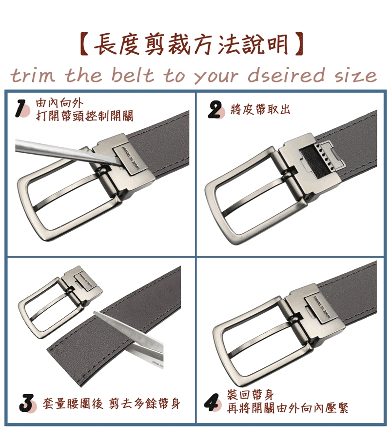 可搭配活動式帶身,方便自行剪裁皮帶尺寸~