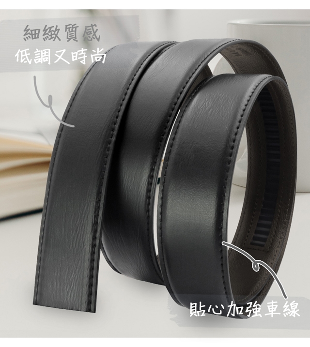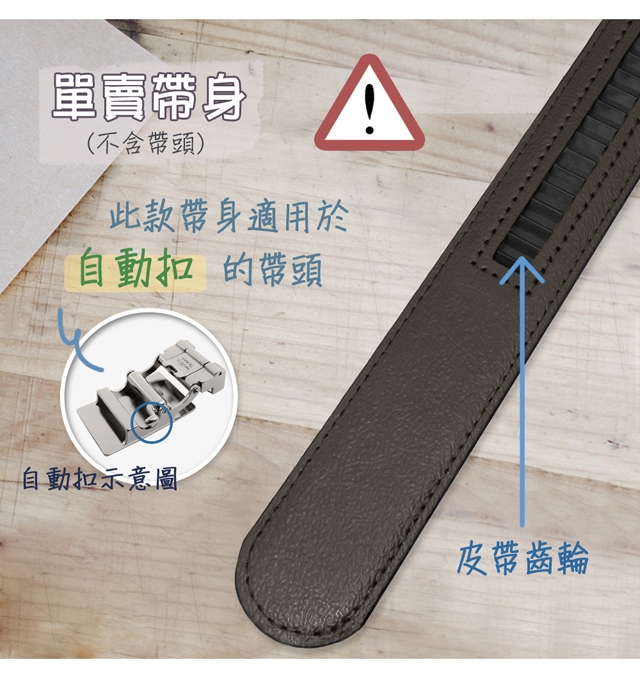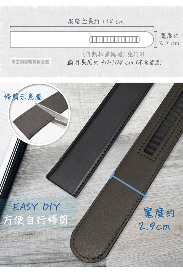 可搭配活動式帶頭,方便自行剪裁皮帶尺寸~