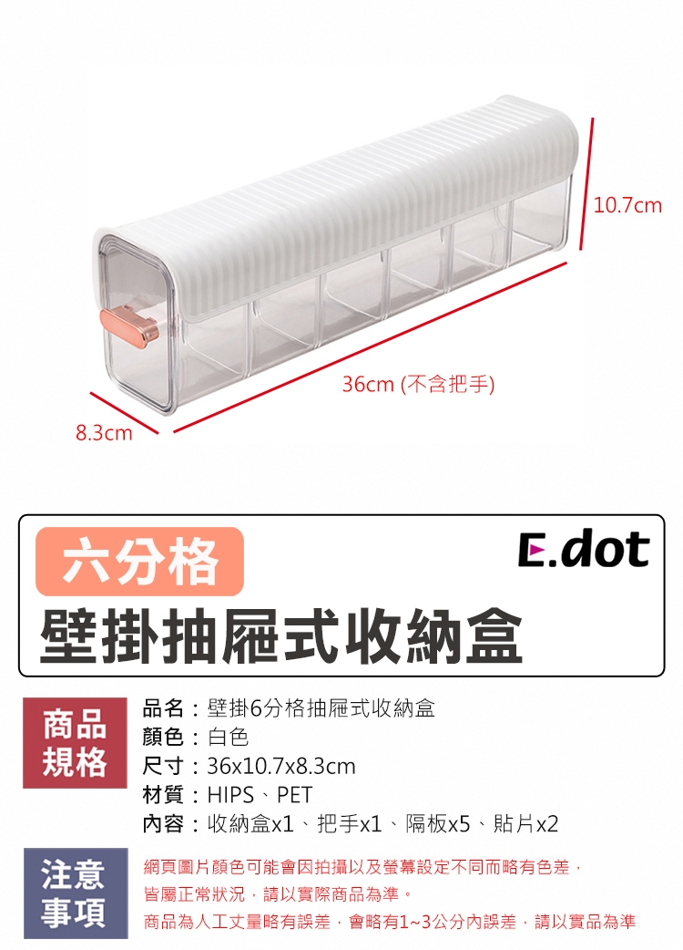 ◆ 商品名稱:壁掛6分格抽屜式收納盒