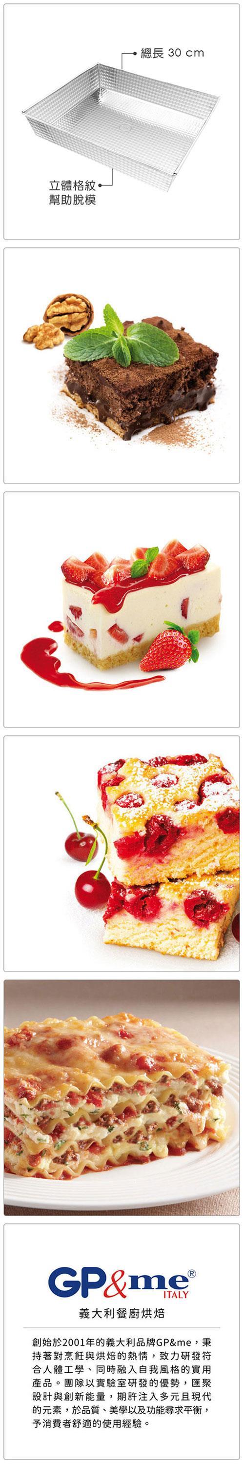 ※ 稍具深度的長方型烤盤,適合製作布朗尼、千層派等點心;亦可烘烤蔬菜、麵條或全雞、肋排等。