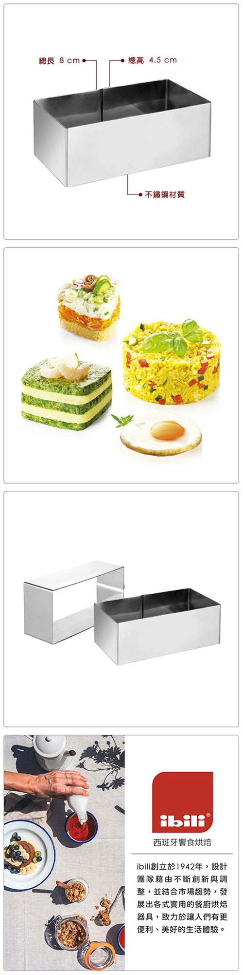 本商品一件入、適用洗碗機並保持乾燥 (不鏽鋼製品可在煎鍋上使用,若要方便食物脫模塑型,可在使用前均勻塗抹少許油份於內緣);通過美國 FDA 食品和藥物管理局認證合格、安全材質製造,請安心使用。Clasica 系列,經典設計搭配優雅線條,提供實用與美觀兼具的舒適使用體驗。法式料理的前菜精巧多變,用造型環製作出充滿創意的菜色,不管是鹹式主菜或甜點,立刻奪人目光、印象深刻。您可試試此款操作簡易的料理固定環製作千層料理,依序填入米飯、蔬食、肉類等鹹甜餡料,即可做出美麗的堆疊式的長方體型料理,加上盤飾更有畫龍點睛的效果;亦適合作起司蛋糕、慕斯蛋糕、鹹甜煎餅、煎蛋模等塑型使用。