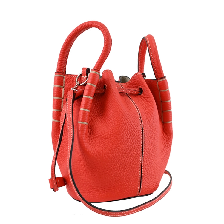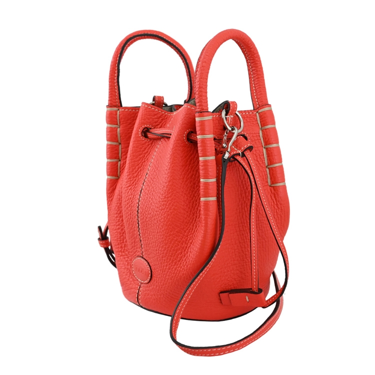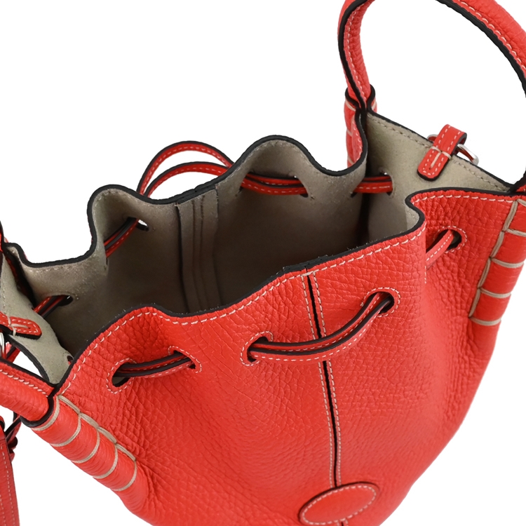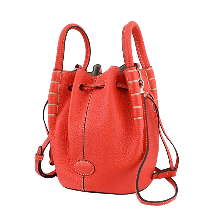 TODS 專櫃兩用水桶包,精緻手工車線,俐落簡約的造型,採用柔軟荔枝牛皮材質,束口抽繩開口,可放短夾、鑰匙、6吋以下手機等隨身物品,附可拆式背帶,可手提也可斜背或側背,是近年最夯首選款,顯出低調奢華的質感,都會時尚感,搶眼又好搭風格。