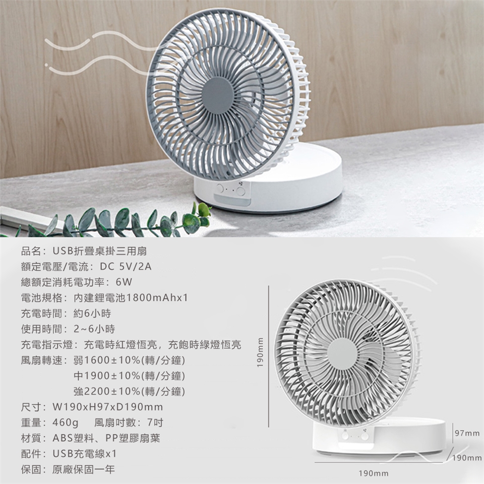 .品名:USB摺疊桌掛三用扇