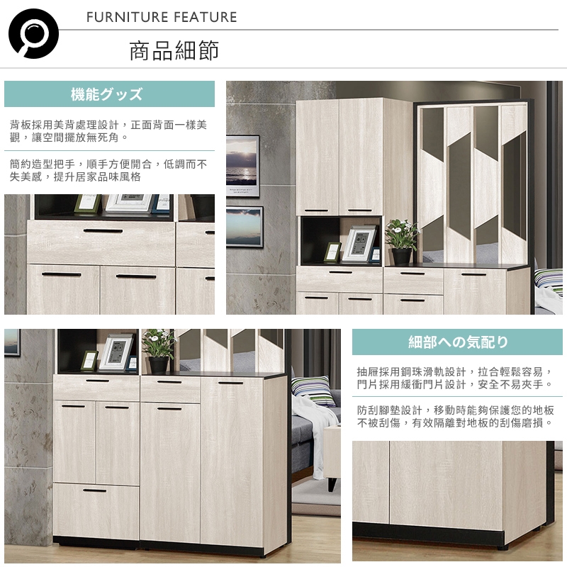 背板為美背式處理,空間擺放無死角,亦可作為隔間櫃使用!