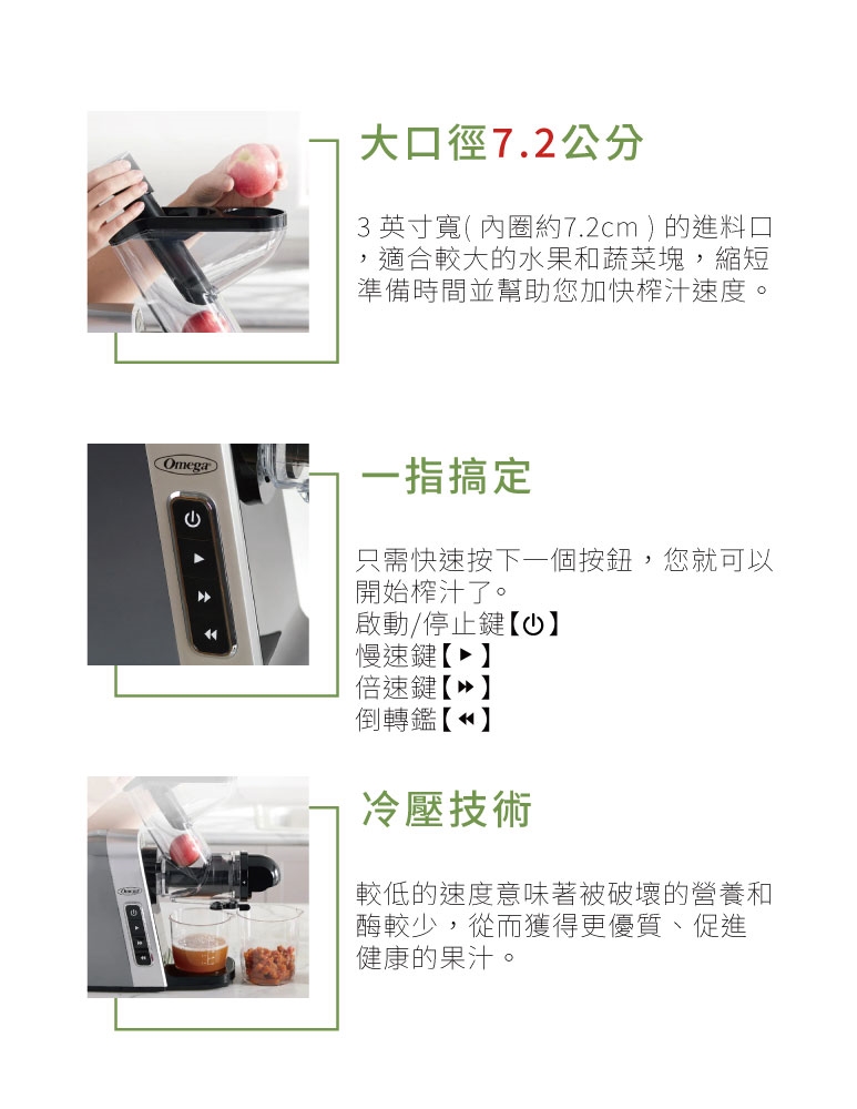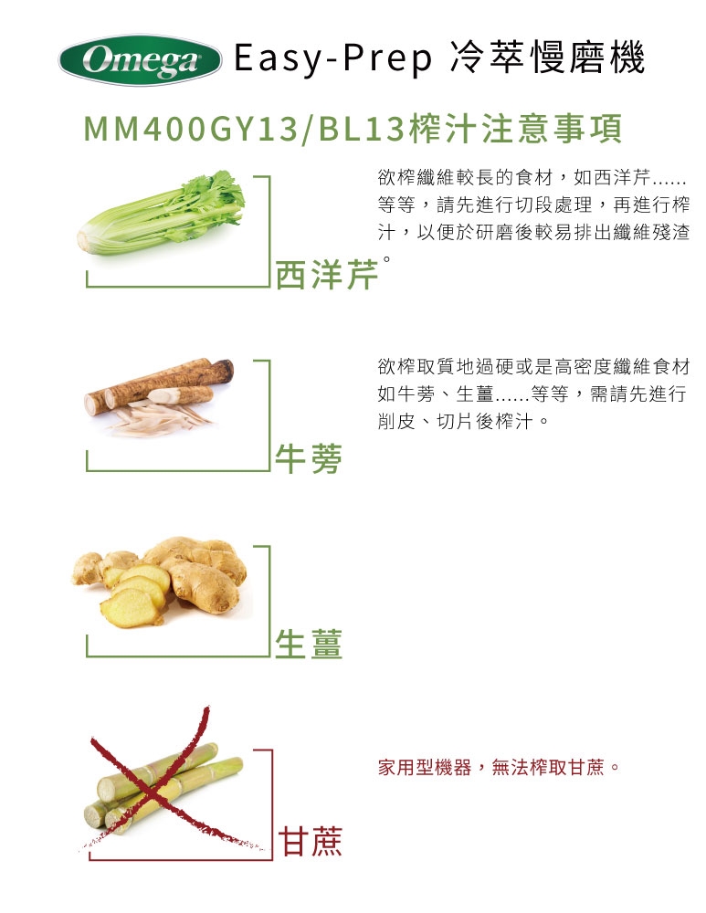 2.Omega® 冷萃慢磨機可從未去皮的蔬果中榨取汁液,但去皮的食材會較順口。
