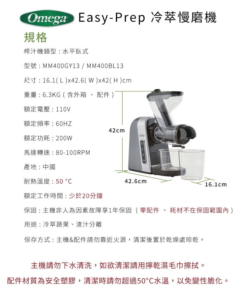 1.每次使用後請務必用溫水、非刺激性的洗碗精以刷子刷洗清潔所有可拆卸部件的側邊及表面,以去除蔬果汁殘留的礦物質和碎屑。