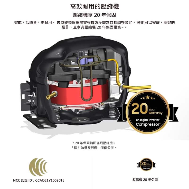 自112年1月1日起, 凡購買本公司 之全系列冰箱,即享有數位變頻壓縮機20年保固,全系列洗衣機,即享有變頻馬達20年保固。