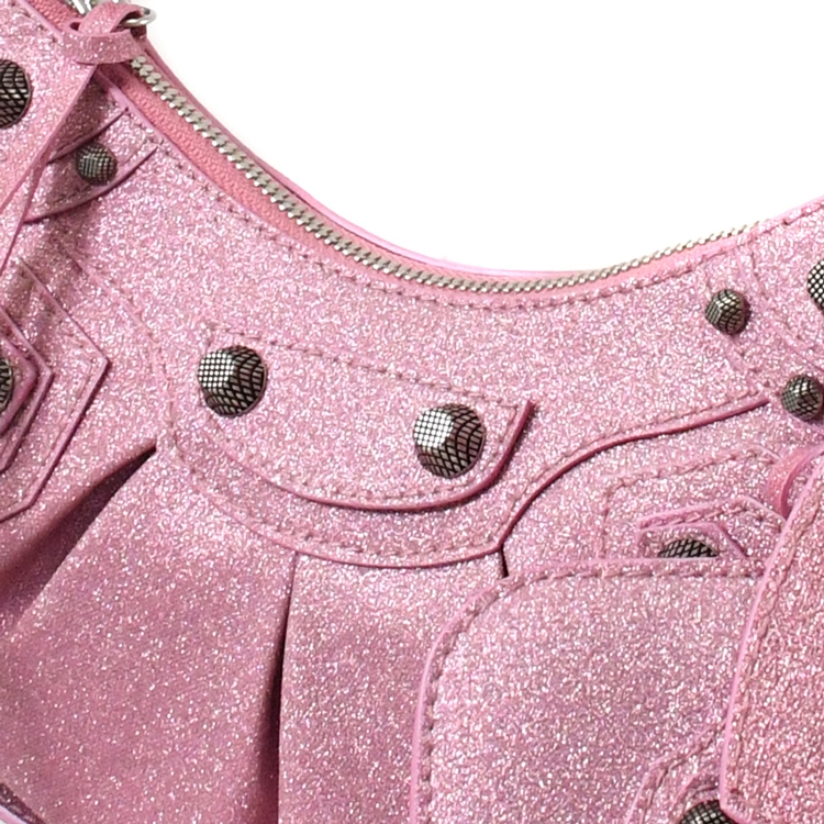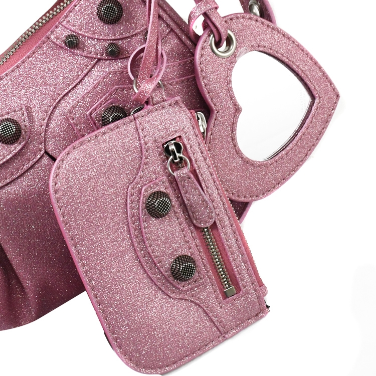 《BALENCIAGA》,深受不少國內外名人青睞的品牌,其魅力在台灣持續燃燒,是許多人踏入名牌世界的第一選擇,熱銷經典款再創新設計,獨特包型設計,專櫃熱賣le cagole系列,可肩背或手提,附1鏡子+1拉鍊零錢包,採用個性款細閃亮片塗層帆布材質/內襯織布,拉鍊開口,可放長夾、鑰匙及手機等物品,顯出低調時尚的氛圍,簡單好搭風格。