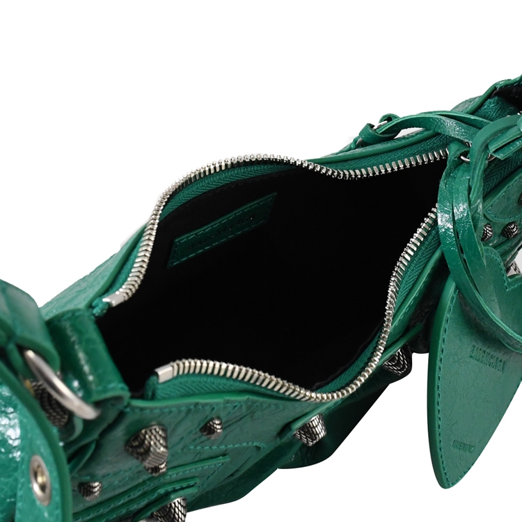 《 BALENCIAGA 》,深受不少國內外名人青睞的品牌,其魅力在台灣持續燃燒,是許多人踏入名牌世界的第一選擇,熱銷經典款再創新設計,獨特包型設計,專櫃熱賣le cagole系列,可肩背或手提,附1鏡子+1拉鍊零錢包,採用小羊皮材質搭配個性鉚釘裝飾,拉鍊開口,內可放長夾、鑰匙及手機等物品,顯出低調時尚的氛圍,簡單好搭風格。