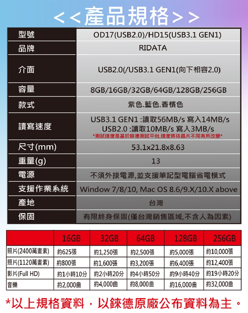 ※以上規格資料若有任何錯誤,以原廠所公佈資料為準。