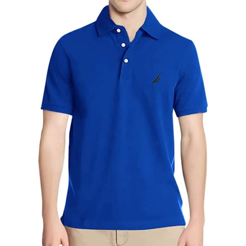 【NAUTICA】2023男時尚棉質彈性針織鈷藍色短袖Polo衫