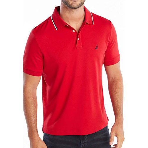 【NAUTICA】2023男時尚棉質雙尖領紅色Polo衫
