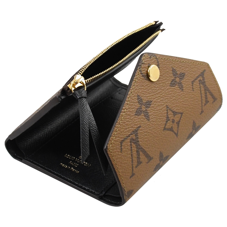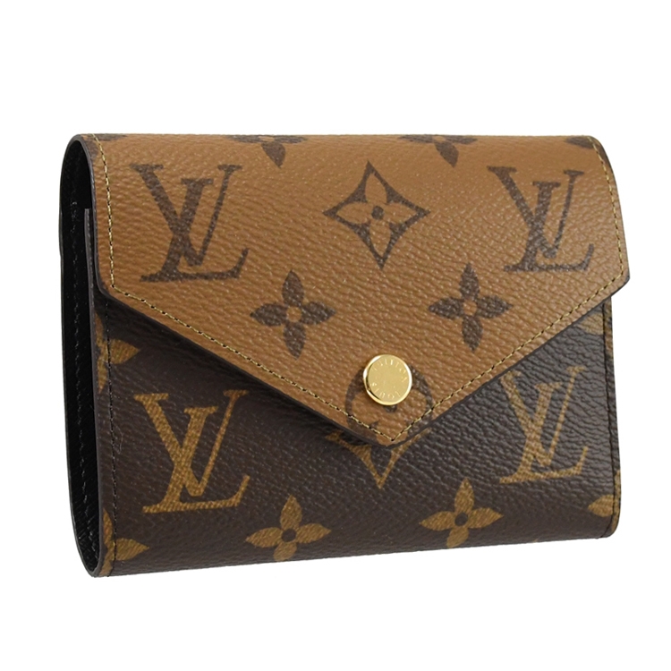 LV 這款PF.Victorine短夾,採用Monogram及Monogram Reverse塗層帆布製成,搭配牛皮襯裡,精緻小巧的信封式設計,內有1鈔票夾+6信用卡夾+2內裡+1拉鍊袋,可輕易放放置較小的包款,整體設計既時尚又富女性氣息,盡顯路易威登精湛工藝與對細節的一絲不苟,流滿都會時尚味道,是款時尚的單品配件。
