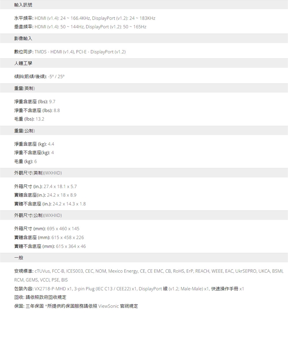 以上規格僅供參考,如有任何問題,請依原廠公告為主。