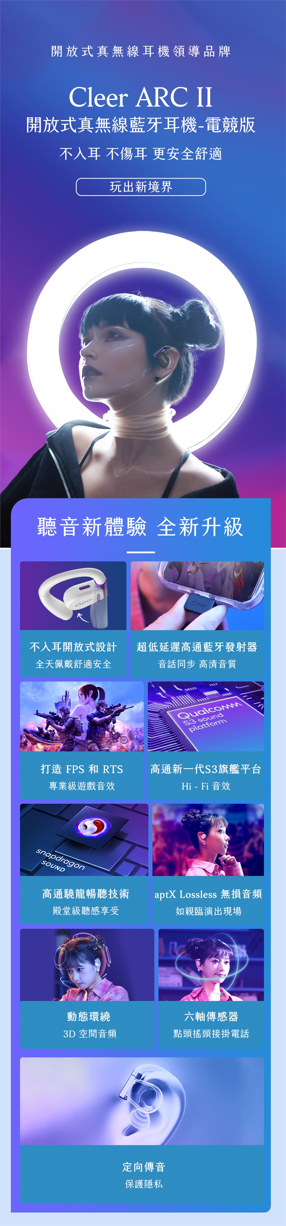產品名稱:Cleer ARC II 開放式真無線藍牙耳機 (電競版)