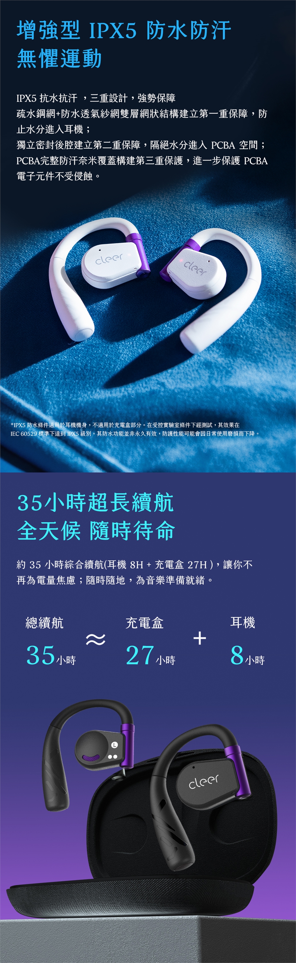 - 長效續航|35H強勁續航 (耳機8H+充電盒27H)