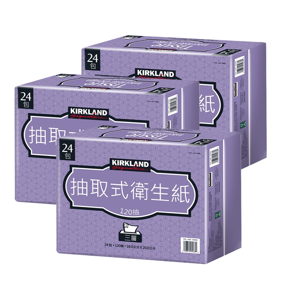 產品內容:科克蘭三層抽取衛生紙-1串(24包)