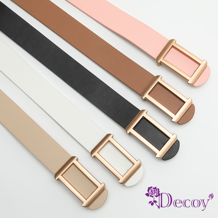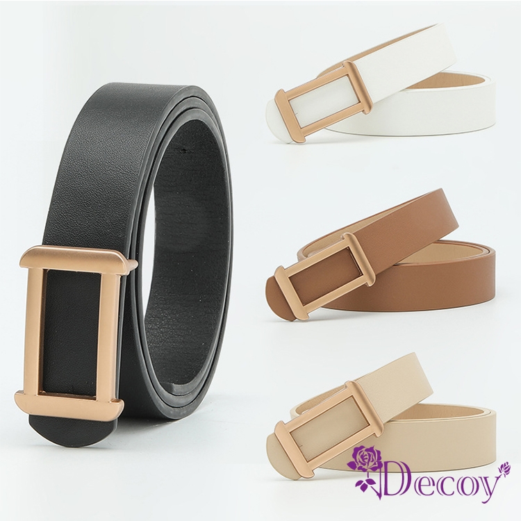 幾何長方型金屬扣頭,純色時尚針扣造型皮帶,
