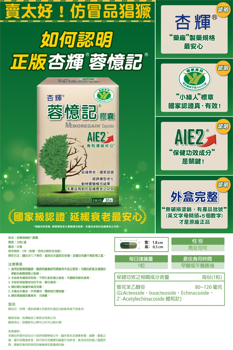 商品詳細介紹 ▶ 點擊圖片前往 YouTube 觀看影片 ▶ 點擊圖片前往 YouTube 觀看影片 體驗說明 不可體驗 使用方法說明 依產品包裝說明。 注意事項 .請於開封後儘早食用完畢。.本品若有破損或完封不良,請勿食用。.請依食用方法使用,有助維持健康,多食無益。.重大疾病及特殊體質者,請先洽詢醫師意見後再食用。.室溫下保存,避免日光直射及受潮,並置放於兒童不易取得之處。.本品為天然成分所製成,產品色澤稍有變化實為正常現象,請安心使用。