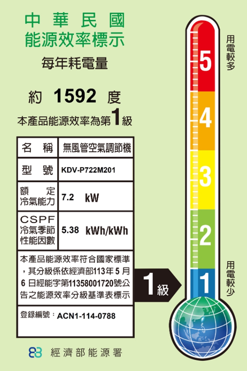 ♦額定冷氣能力:冷7.2Kw/暖7.2Kw